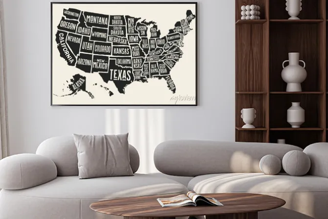 Plakat: Mapa z podpisanymi stanami usa