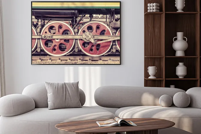 Plakat: Mechanical part and wheels of the steam locomotive.