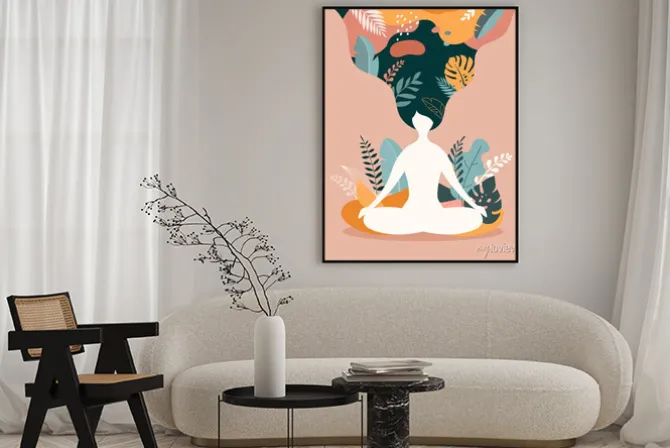 Plakat: Medytująca kobieta wśród roślin egzotycznych