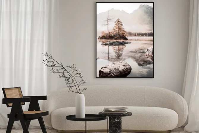 Plakat: Mglisty poranek w górach