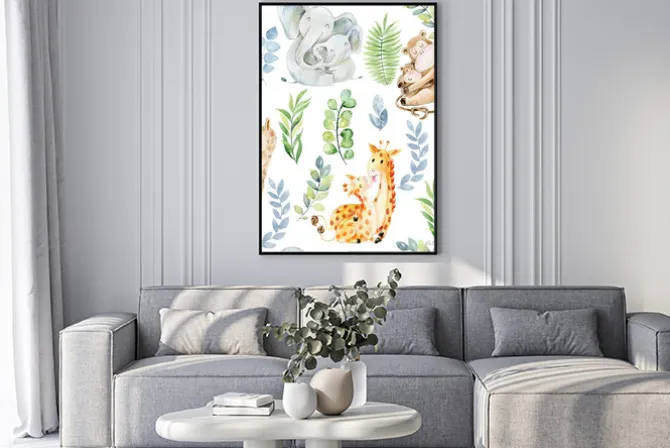 liść, lama, żyrafa, małpa, słoń, miłość, lato, pokój dziecięcy, przyrody