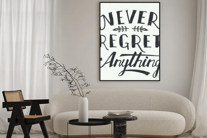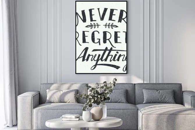Plakat: Nigdy nie żałuję niczego. motywacyjne ręcznie napis t-shirt lub