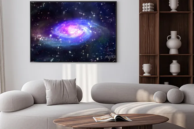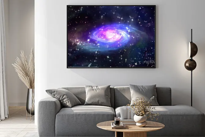 Plakat: Przestrzeń niebieska galaktyka w przestrzeni.