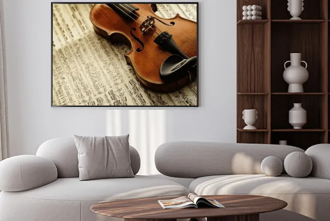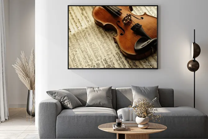 Plakat: Stare i rzadkie skrzypce na arkuszu notatki