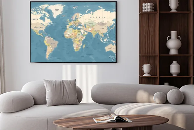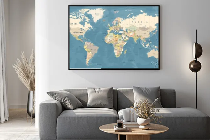 Plakat: Szczegółowa ilustracja mapy świata