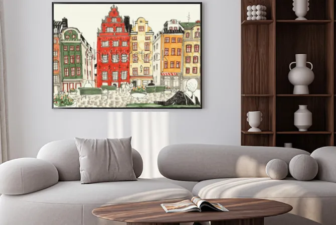 Plakat: Urokliwe kamienice w stylu rysunku