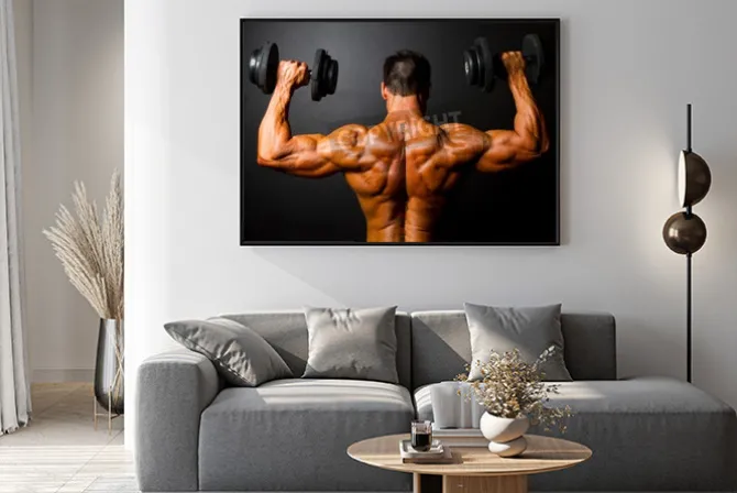 Be the first to review “Plakat: Widok z tyłu szkolenia kulturysta z hantlami na czarnym tle” Anuluj pisanie odpowiedzi