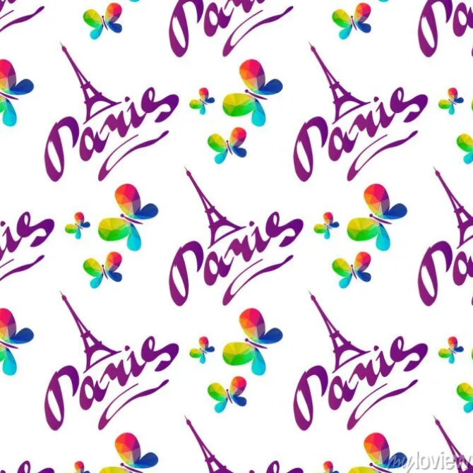 kolory tęczy, fioletowy, Wieża Eiffla, Paryż, wiosna, miłość, motyle, niebieski, rysunek