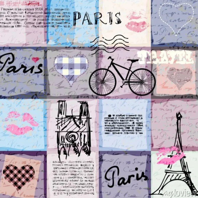 Tapeta: Bez szwu tła deseń. retro kolażu notatnika paryż.