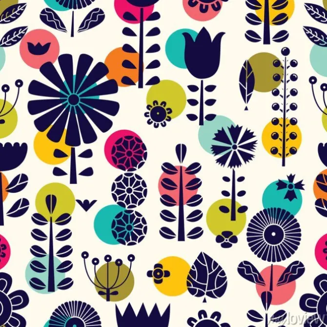 lato, wiosna, styl skandynawski, retro, ornament, liść, ogród, kwiaty