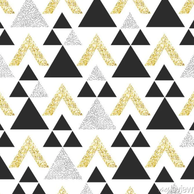 Tapeta: Deseń w trójkąty z brokatowymi elementami