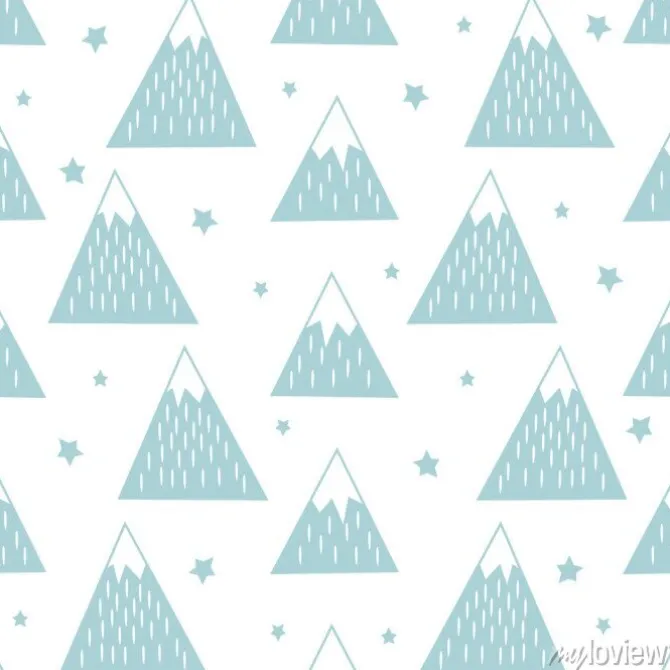 Tapeta: Jednolite wzór z geometrycznych ośnieżonych gór i gwiazd. proste