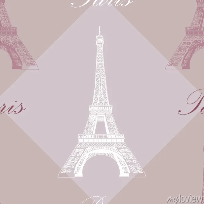 Jednolite wzór z wieży Eiffla na szarym i fioletowym tle.