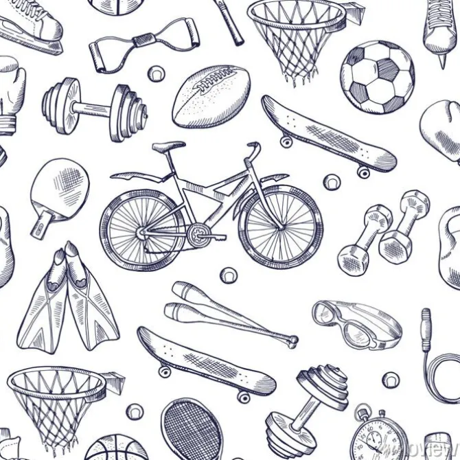 rakieta, boks, piłka nożna, koszykówka, rower, szkic, siłownia, sportowe, piłka