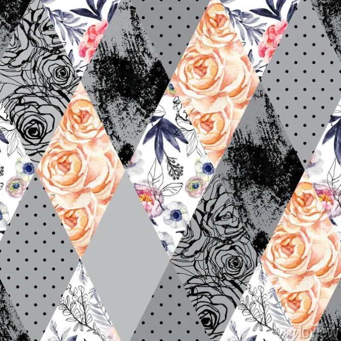 geometryczne, patchwork, róże, szkic, łąka, kropki, ogród, wiosna, kwiaty