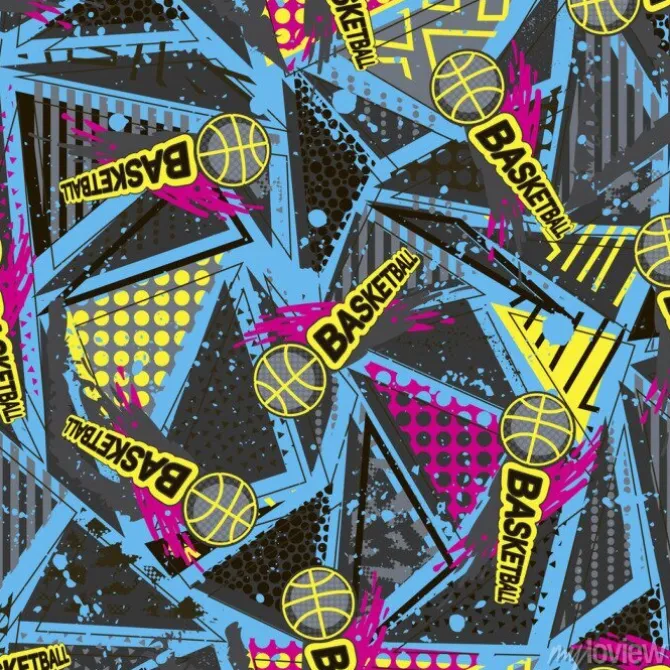 Streszczenie bezszwowe wektor wzór dla dziewcząt, chłopców, ubrania. Kreatywne tło Koszykówka z kropkami, figury geometryczne Śmieszne tapety na tekstylia i tkaniny. Styl mody. Kolorowe jasne.