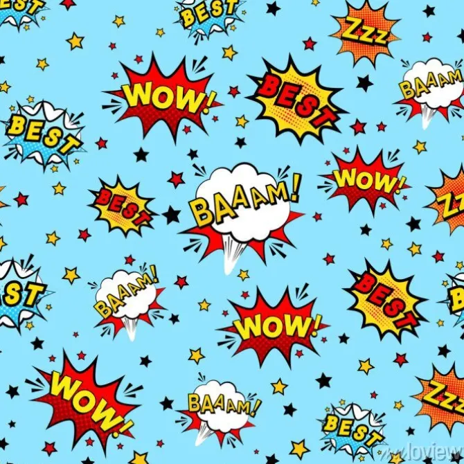 Streszczenie szwu wzór dla dziewcząt, chłopców, ubrania. Tło wektor kreatywnych patch z naklejki, bańka wymowy. Zabawna tapeta bąbelkowa wzór na tekstylia i tkaniny. Moda w stylu pop-art..