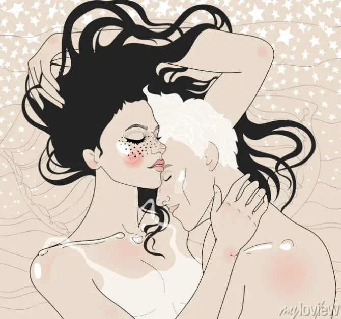 Vector pi? Kna para delikatnie tulenie zasypia pod gwiazdami.