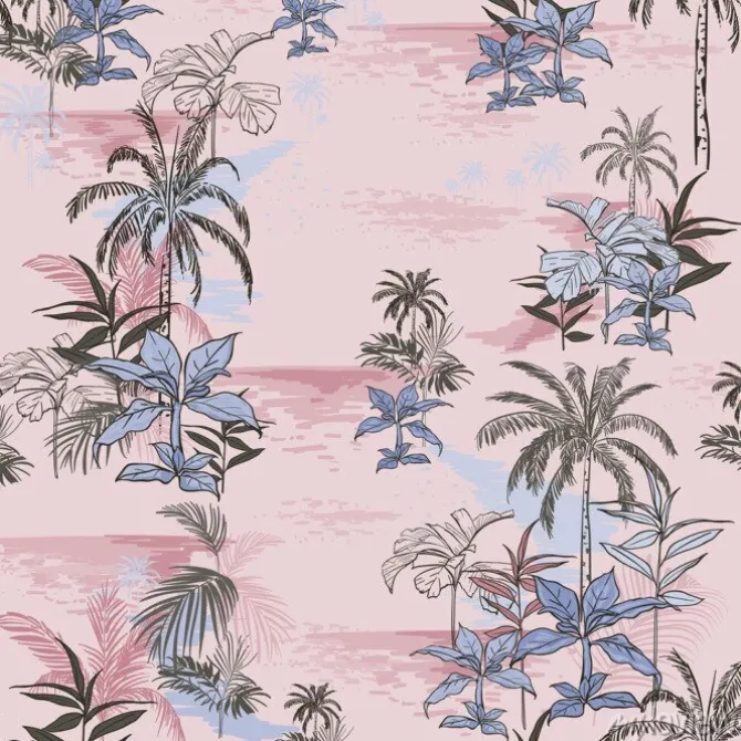 rysunek, niebieski, drzewa, dżungla, tekstura, morze, liść, kwiaty, ocean