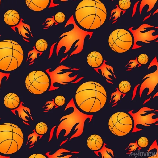Wzór z płonącymi piłkami do koszykówki.