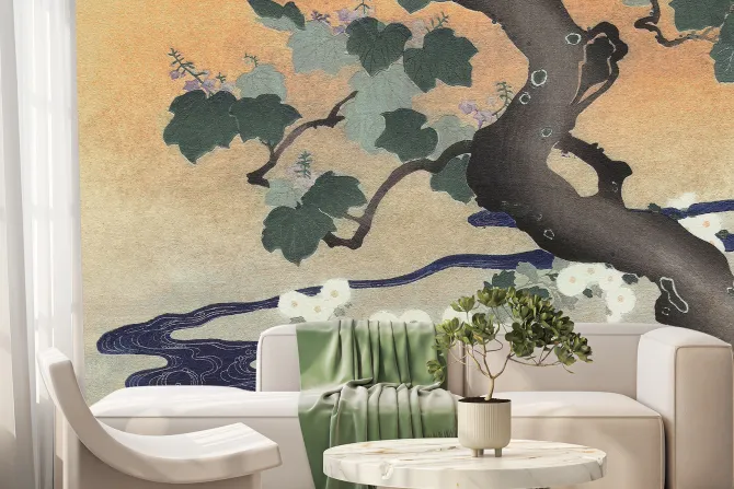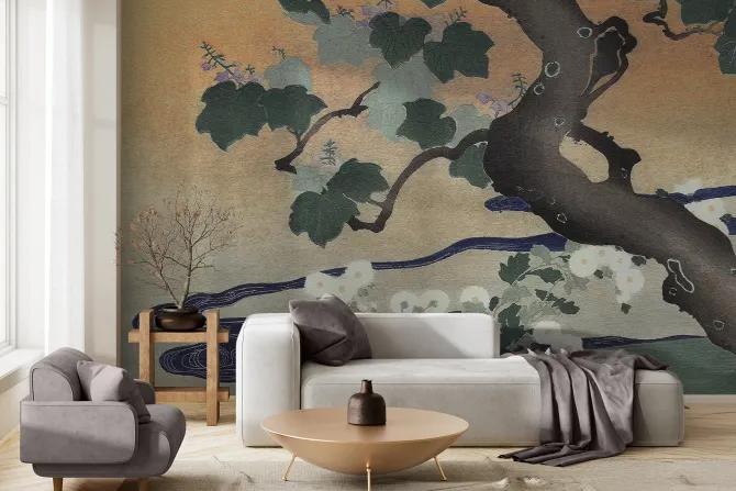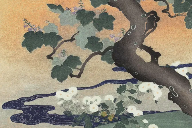 Abstrakcyjny japoński krajobraz roślinny.