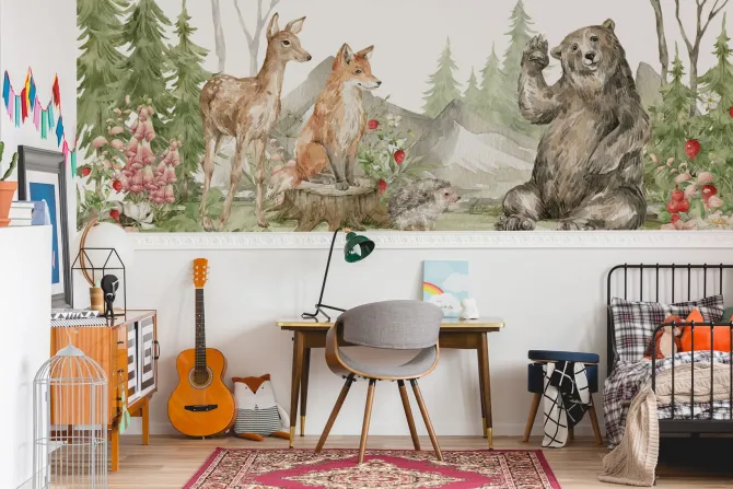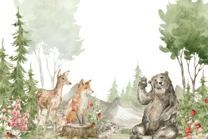 Fototapeta: Akwarelowy krajobraz leśnych zwierząt wśród przyrody