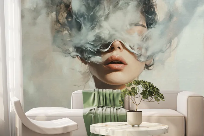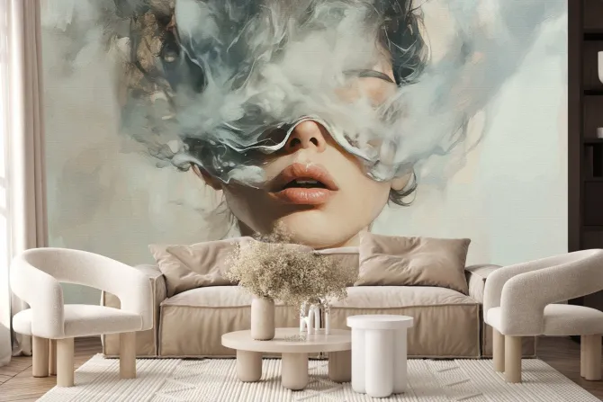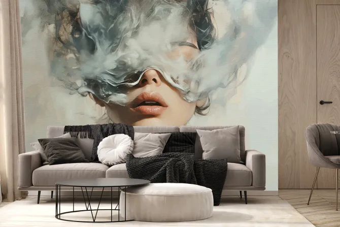 Fototapeta: Artystyczny portret z wizerunkiem kobiety i chmurą dymu