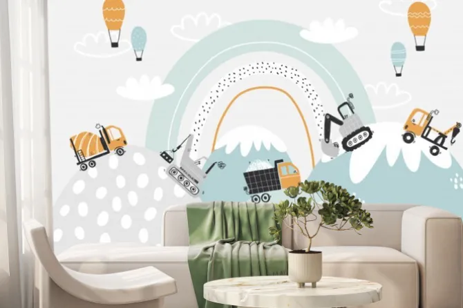 styl skandynawski, droga, pokój dziecięcy, sztuka, żuraw, ciągnik, rysunek, krajobrazy, moda