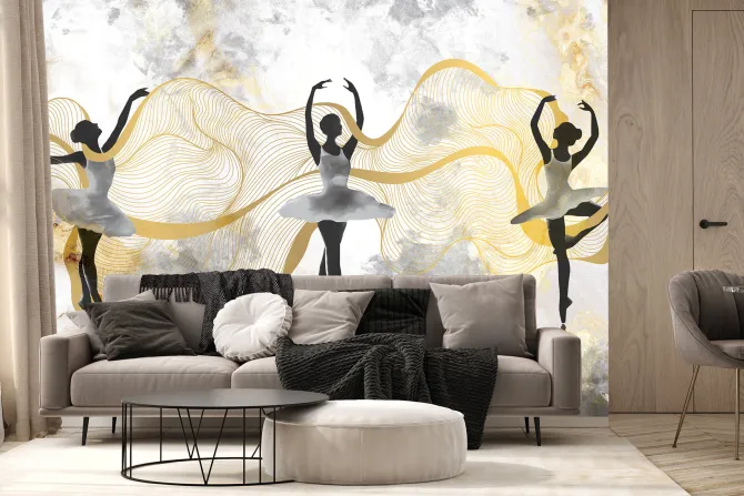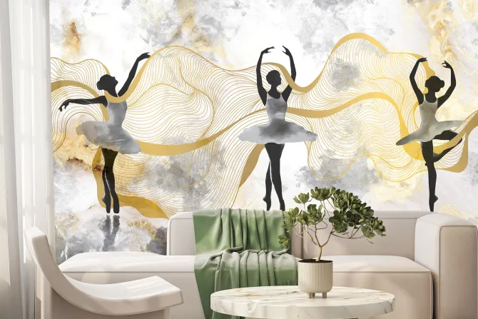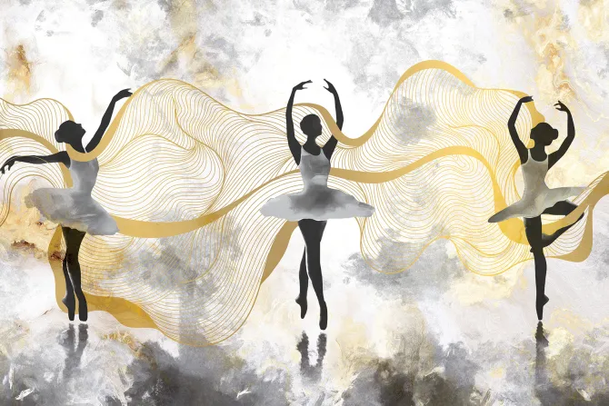 Baletnice tańczące na tle akwareli.