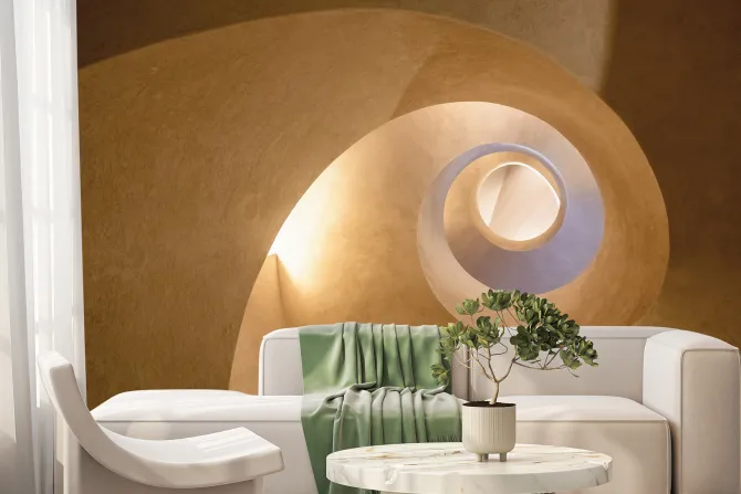 Betonowa spirala schodów w motywem tunelu.