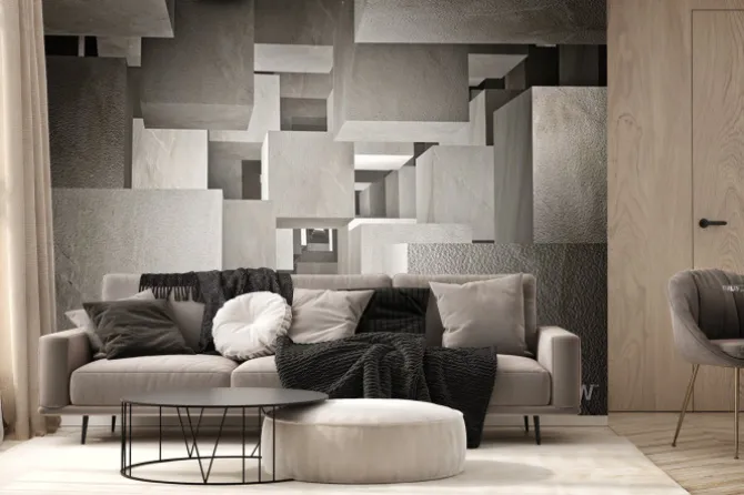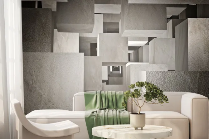 Betonowe sześciany tworzące wzór z efektem 3D.
