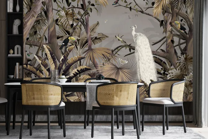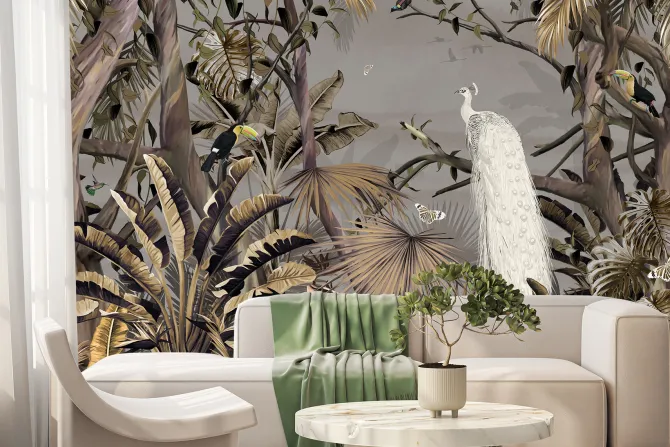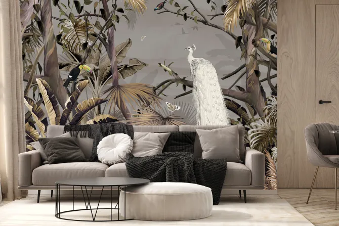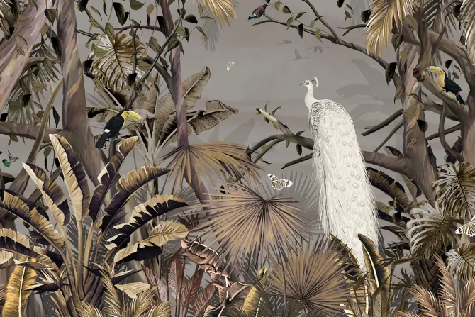 Fototapeta: Biały paw tukany i motyle w tropikalnej dżungli