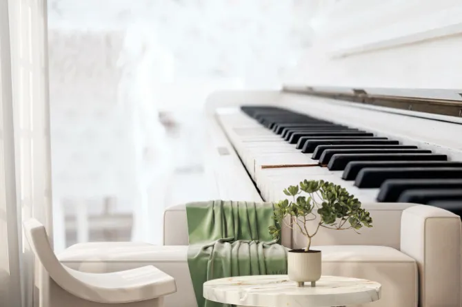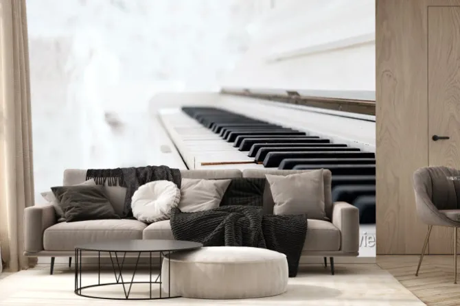 Fototapeta: Biały zabytkowe pianino w białym pokoju