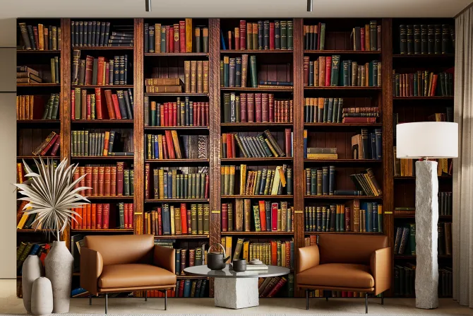 Fototapeta: Biblioteka pełna książek i ksiąg na półkach