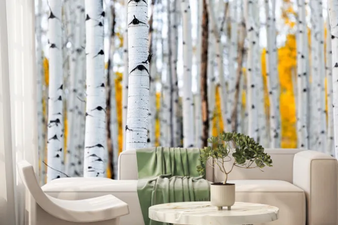 Fototapeta: Brzozy w jesiennym lesie krajobraz