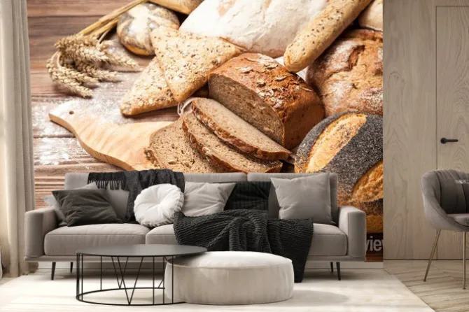 Fototapeta: Chleb asortyment na powierzchni drewnianych