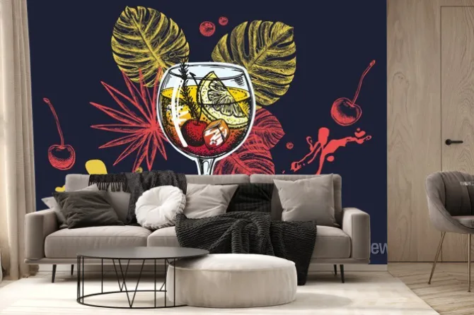 Fototapeta: Cocktail menu design template. alcoholic cocktails hand drawn.