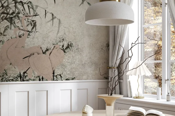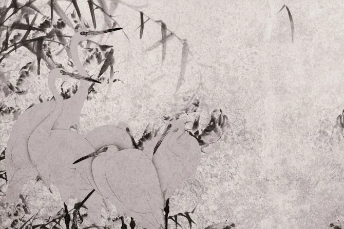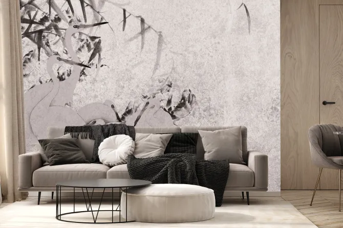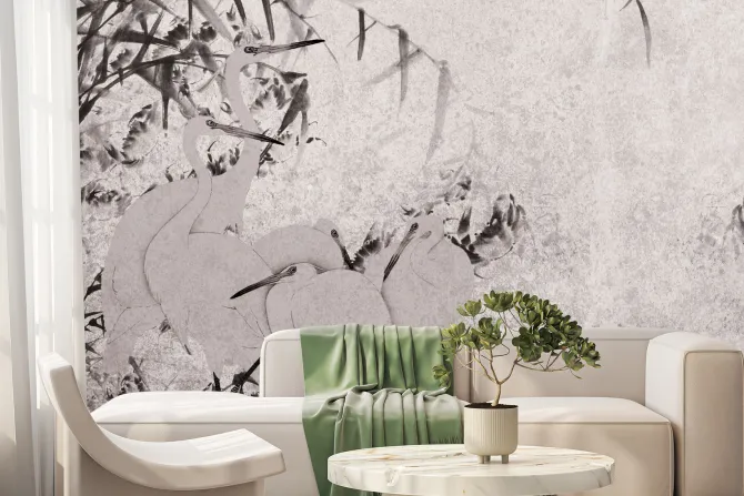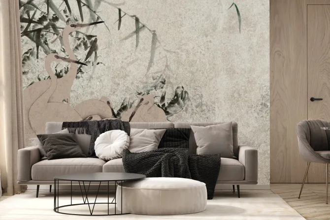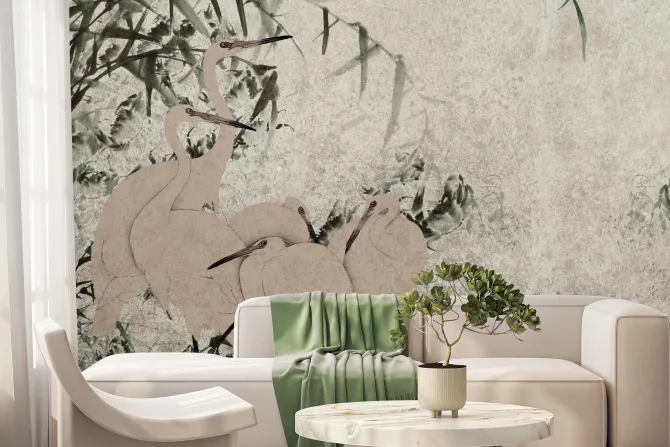 Fototapeta: Czaple i bambus na tle z delikatną teksturą