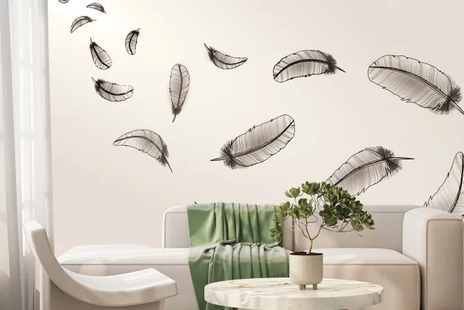 Skandynawia, styl skandynawski, beżowy, pawie pióro, pióro, ptaki, ptak, pióra