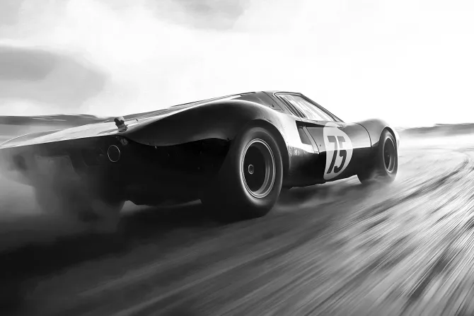Fototapeta: Czarno-białe zdjęcie auta w stylu retro