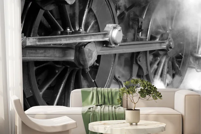 Fototapeta: Czarno-białe zdjęcie kół pociągu