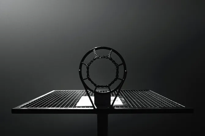 Fototapeta: Czarno-białe zdjęcie kosza do koszykówki