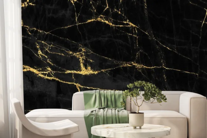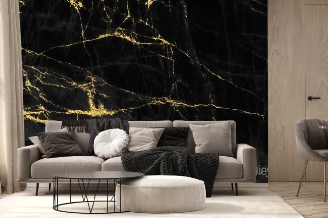 Fototapeta: Czarny marmur ze złotymi zdobieniami