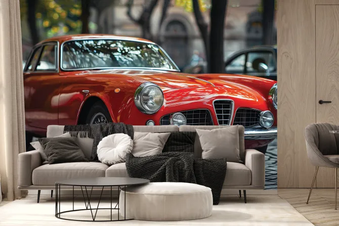 Fototapeta: Czerwony klasyk w miejskiej scenerii
