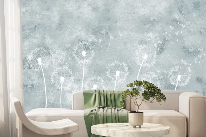 Fototapeta: Delikatne dmuchawce na niebieskim tle