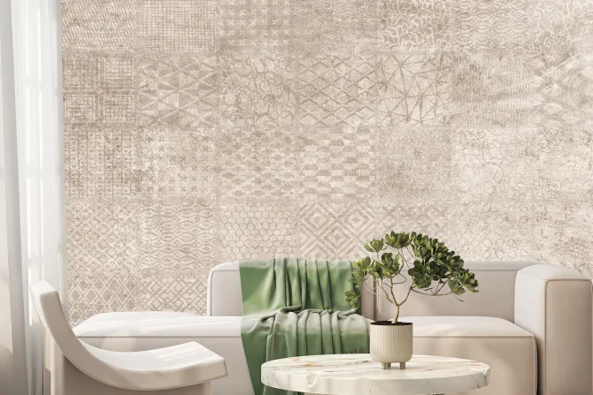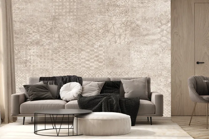 beżowy, piasek, kwiaty, paski, płytki, wzór, styl skandynawski, Skandynawia