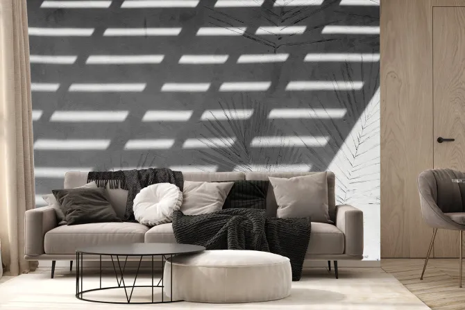 Fototapeta: Delikatne odbicie palm na ścianie z cieniem
