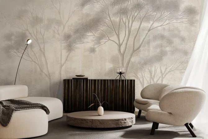 Fototapeta: Delikatny krajobraz lasu w beżach