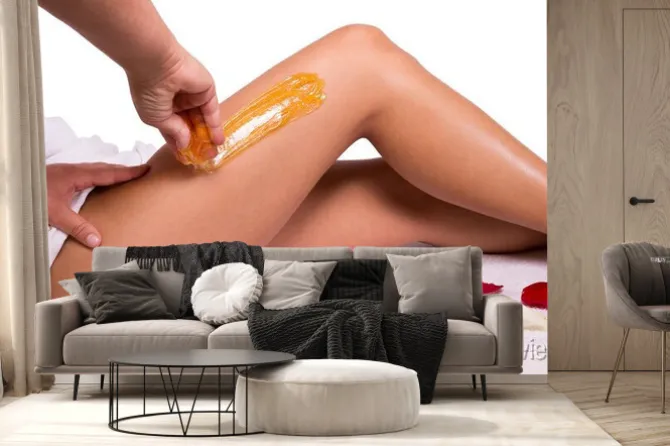 Fototapeta: Dosładzanie: depilacja z wytapiać metal cukru na nogach.