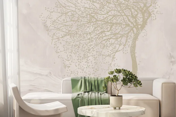 Fototapeta: Drzewo z kwiatami wiśni na marmurze